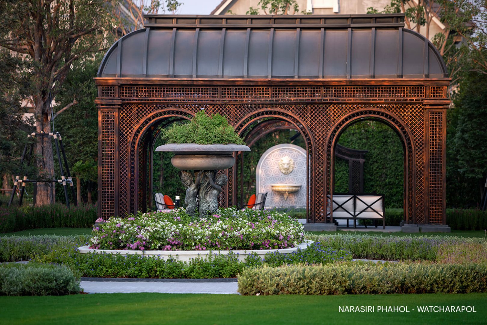 พื้นที่ส่วนกลางขนาดใหญ่ที่ได้รับแรงบันดาลใจจากสวน Tuileries Garden ประเทศฝรั่งเศส